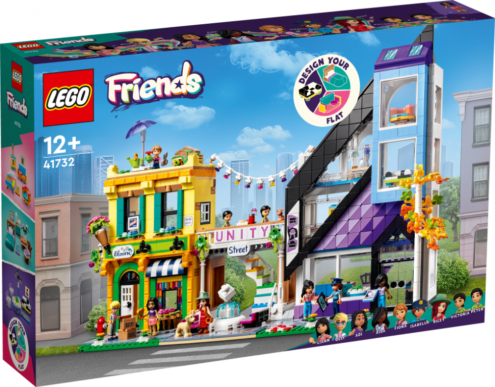 Iedvesmo mazos būvētājus paust savu radošumu ar šo aizraujošo projektu. Bērni no 12 gadu vecuma var pilnveidot savas dizaina prasmes, būvējot un pielāgojot LEGO® Friends komplektu "Ziedu un dizaina preču veikali pilsētā" (41732). Modulārā ēka ir veidota no 3 daļām, tāpēc bērni var modeli izkārtot dažādos veidos. Viņiem patiks būvēt detalizēto LEGO Friends ziedu veikalu, mēbeļu veikalu un Adijas dzīvokli, jo katra ēka ir veidota atšķirīgā arhitektūras stilā. Pēc tam bērni var radoši darboties, izvēloties mēbeles tukšajam dzīvoklim. Komplektā ir iekļauti 9 tēli, 2 mājdzīvnieki, 3 dažādu stilu mēbeles un daudz piederumu, kas palīdzēs izdomāt aizvien jaunus stāstus ar šo apskatei piemēroto modeli