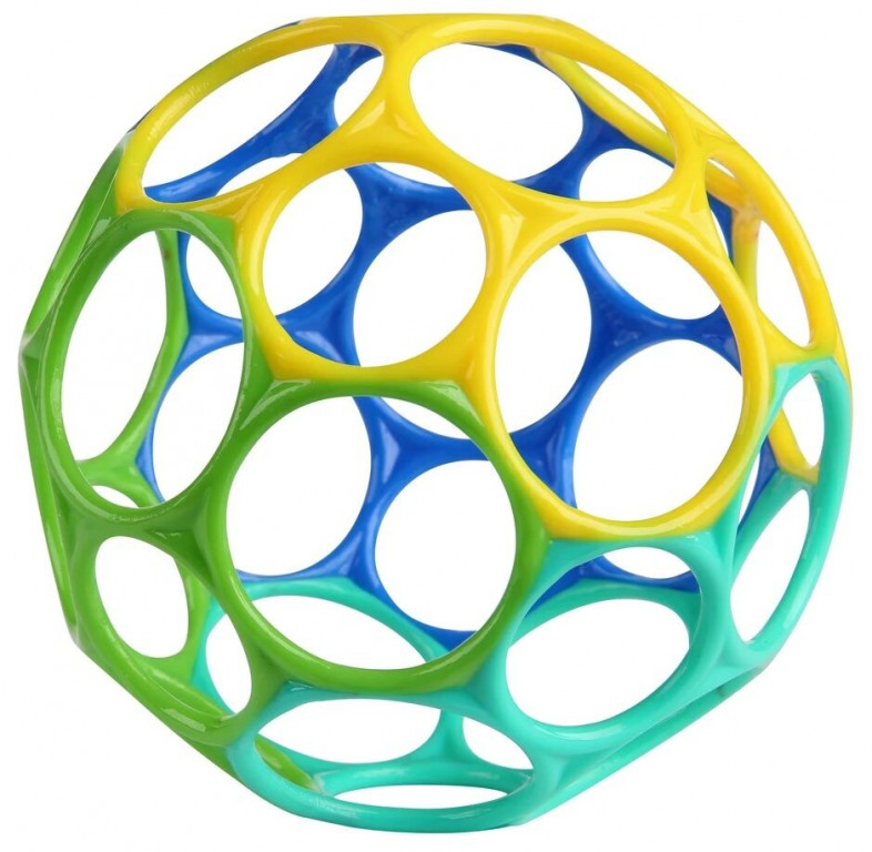 Rotaļlietas / Rotaļlietas mazuļiem / Grabulīši / Oball klasiskā bumba 12 cm diametrā Zili-zaļi-dzeltena no 0+ mēnešiem