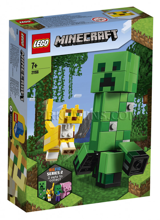 Ļauj vaļu sajūsmai par Minecraft™ varoņiem! Vai BigFig Creeper™ uzbruks attapīgajam ocelotam no slēpņa? Vai arī dzeltenais monstrs aizbiedēs zaļo briesmoni? Tas ir atkarīgs tikai no tevis! Kustini Creeper kājas un galvu (tikai mieru, tas nesprāgs!). Pielāgo ocelota galvu, kājas un asti. Kad rosība norims, BigFig Creeper un ocelots izskatīsies lieliski, izlikti apskatei tavā istabā.