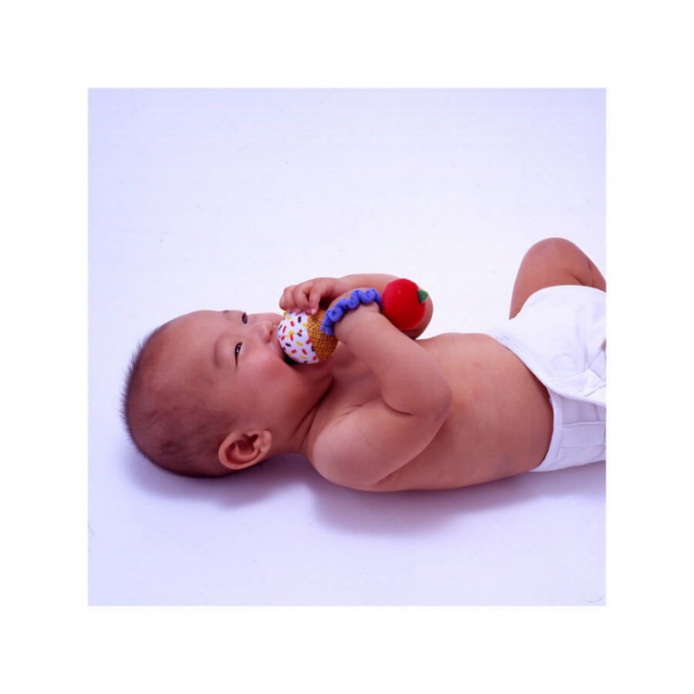 No 1 mēneša mazuļi var attīstīt savu motoriku spēlējoties ar grabuli.