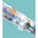 Manuāli atverams, bērnu piekstiņiem drošs, krāsains caurspīdīgs lietussargs.