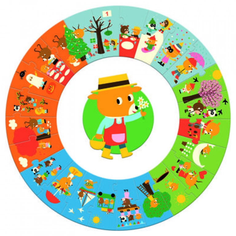 Kāds gadalaiks seko ziemai? Saliec puzli un apskati lācēna viena gada notikumus! Gigantiskā puzle apļa formā ar viena gada attēlojumu.