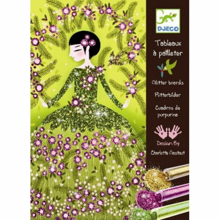Rotaļlietas / Rokdarbi / Smilšu glezniņas / DJ09500 DJECO Krāšņie tērpi- 4 brīnumainas bildītes ar gliteriem, no 6-12 gadiem