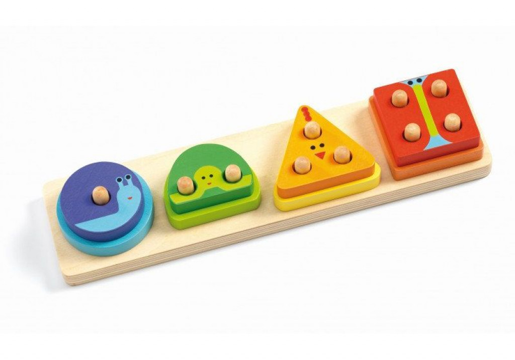 Rotaļlietas / Rotaļlietas mazuļiem / Formu šķirošana / Djeco Koka formu šķirotājs - Deguntiņi 18 mēn. DJ06203