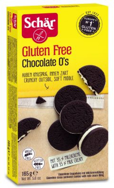 Schar Chocolate O's - bezglutēna kakao cepumi ar piena krēma pildījumu, 165gr.