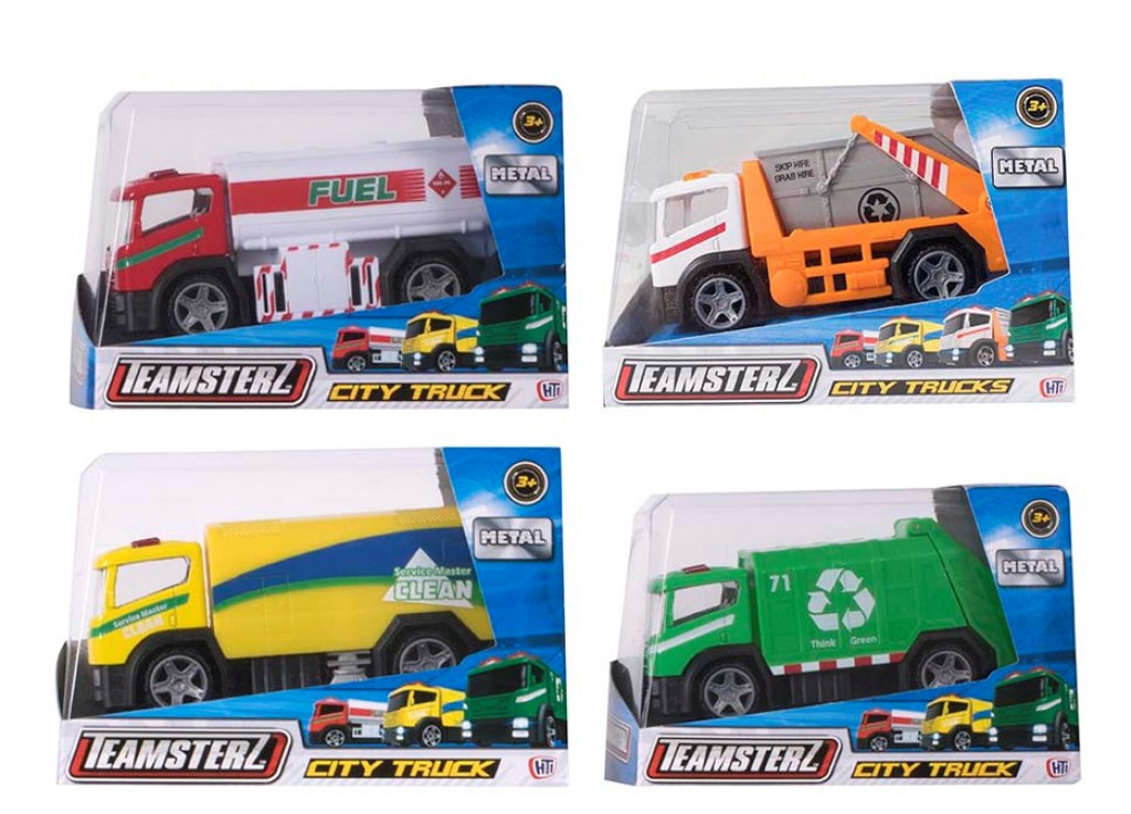 Teamsterz Lielgabarītu sanitārā mašīna (orandžā un dzeltenā) apm. 13cm garumā Cena par 1gab. 3+gadiem