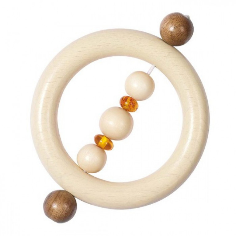 GOKI koka grabulītis ar dzintara gabaliņiem (11,5cm)